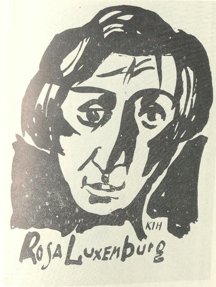 칼 야콥 히르쉬가 1919년 로자 룩셈부르크의 죽음을 맞아 그린 초상화. Public Domain.